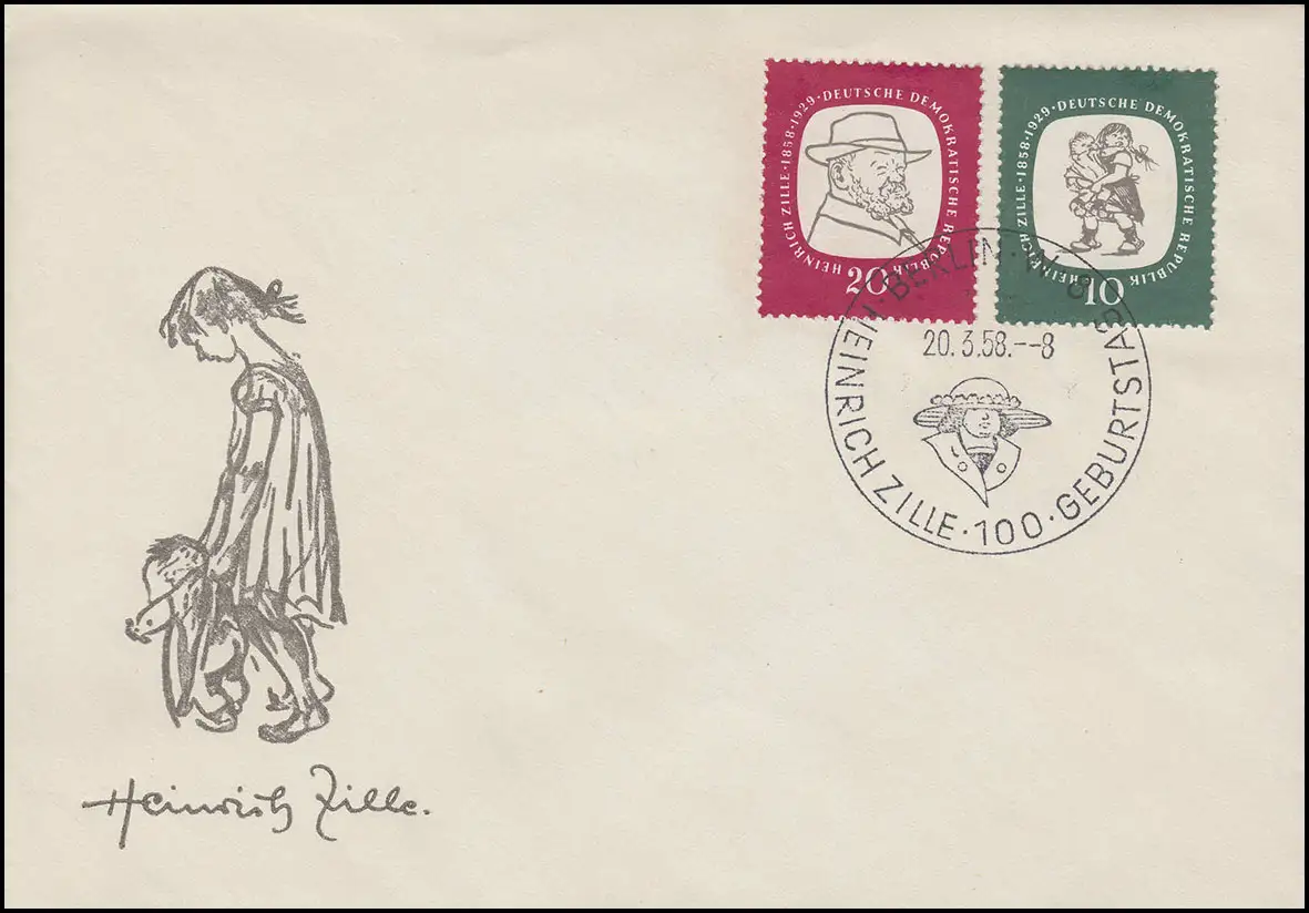 624-625 Heinrich Zille 1958 - Set sur le FDC de bijoux ESSt BERLIN 20.3.58