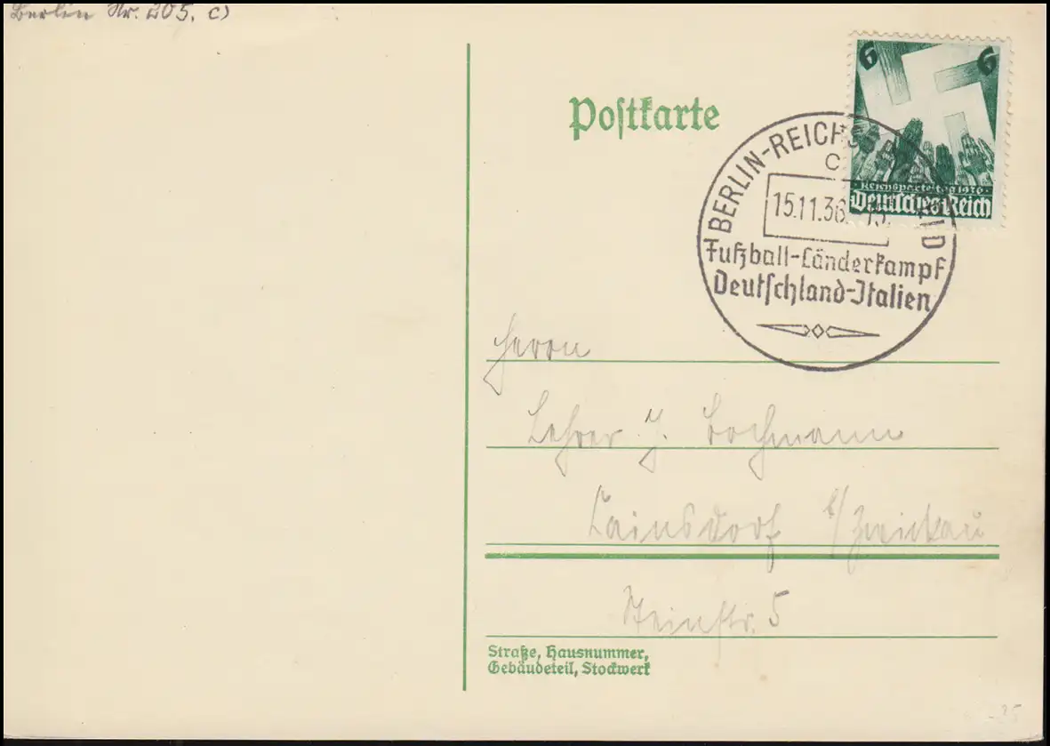 Tampon spécial: BERLIN-RICHSPORTFELD Football-Landesspiel Allemagne-Italie N° de catalogue: 632 Examen: original Référence produit: milliard022758