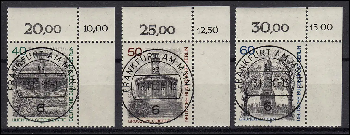 634-636 Berlin Vues 1980, 3 valeurs complètes - ensemble avec KBWZ O FfM