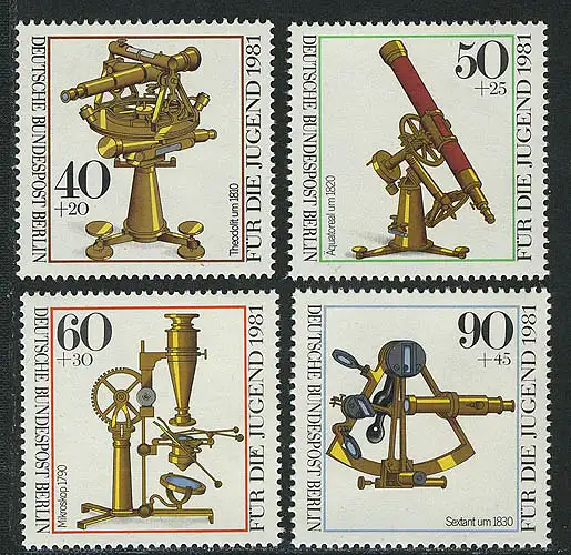 641-644 Apparence jeunesse: théodolite, équatoréique, microscope, sextant 1981, phrase **