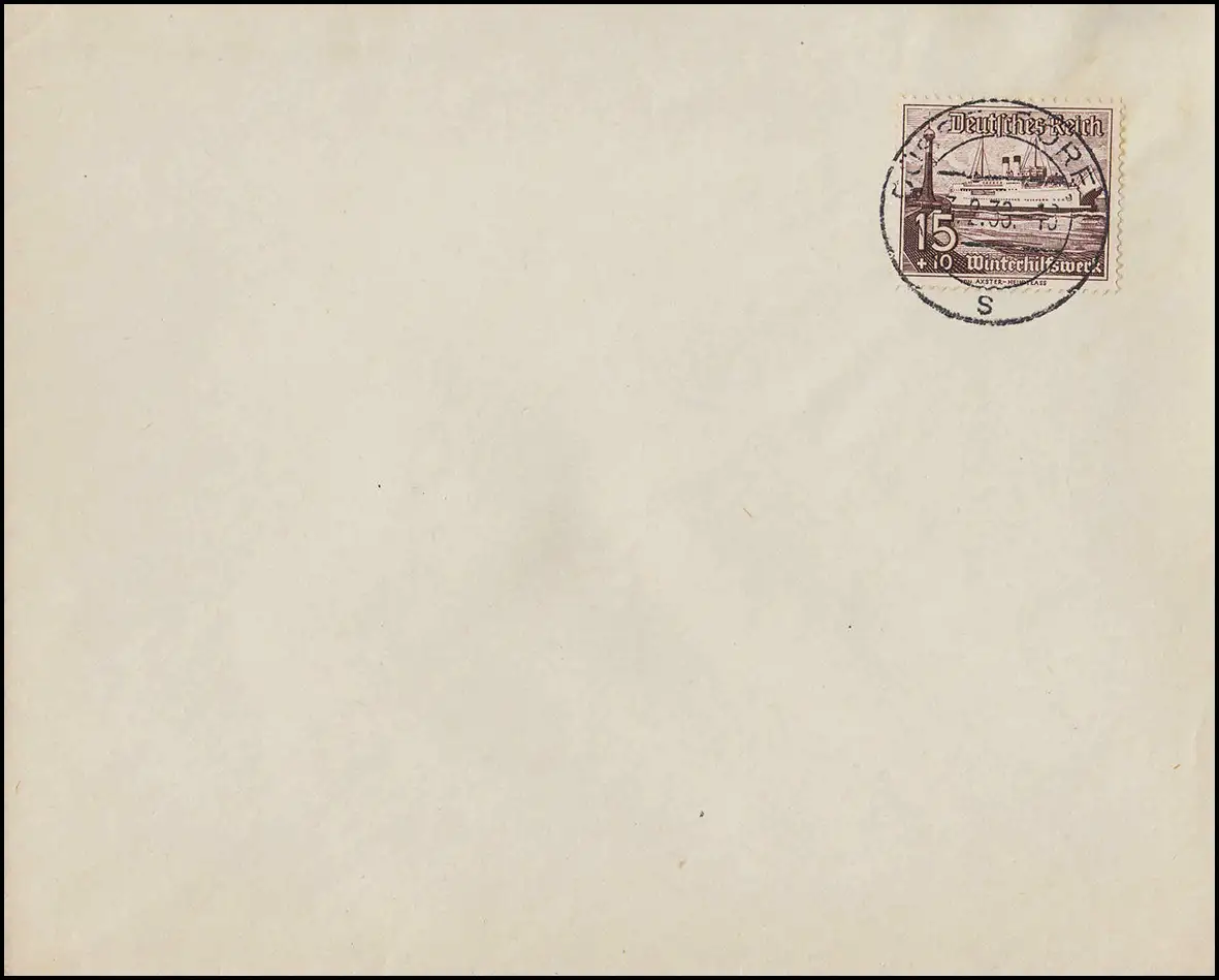 657 WHW 15 Pf. Bateau - Marque sur enveloppe centrale DÜSSELDORF 1 s 3.2.1938