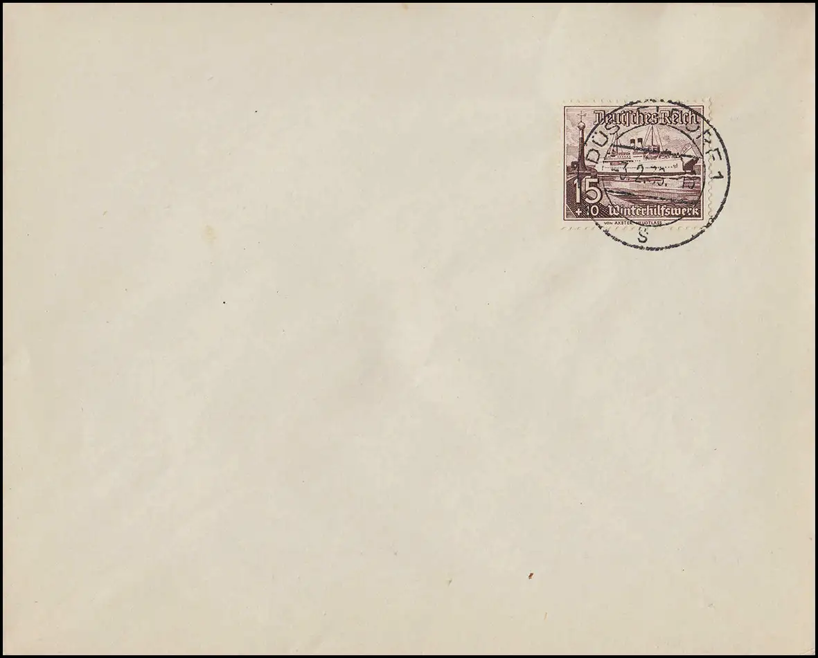 657 WHW 15 Pf ferry - marque sur enveloppe centrale DÜSSELDORF 3.2.38