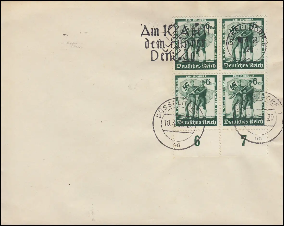 662 référendum sous-rand-Quatrierblock, lettre blanche DÜSSELDORF 10.4.38
