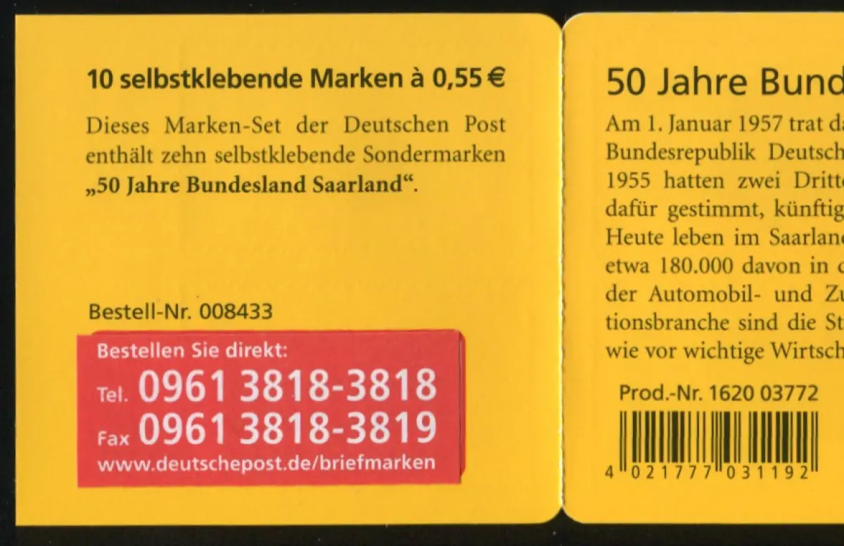 Une offre dans Timbres RFA Carnets de timbres - 4.734 autres offres dans cette catégorie