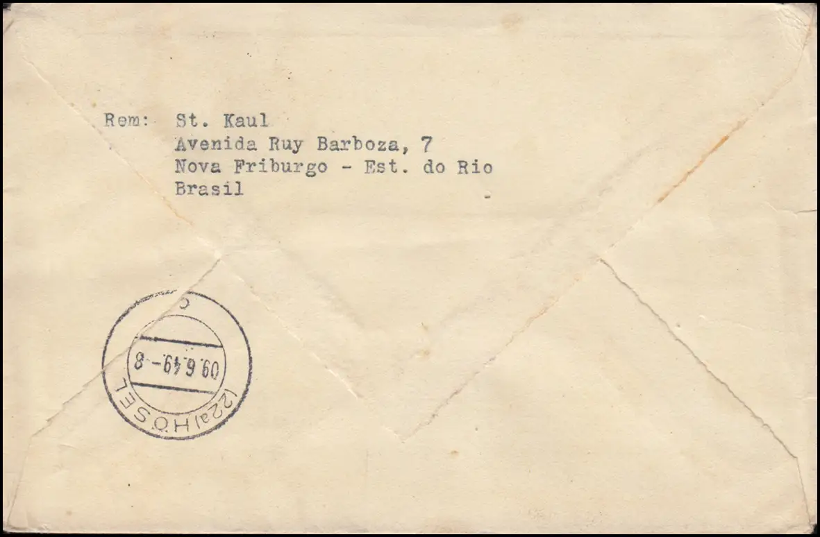 672 fin de guerre avec 717, 735, 737, 738 et 741 sur lettre R NOVA FRIBURGO 20.5.49
