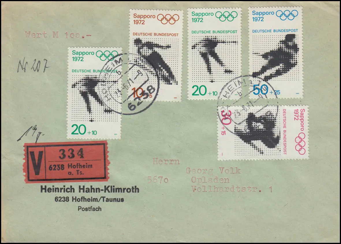 680-683 Marques Olympia-Titre comme MiF sur la lettre de valeur HOFHEIM 23.6.1971