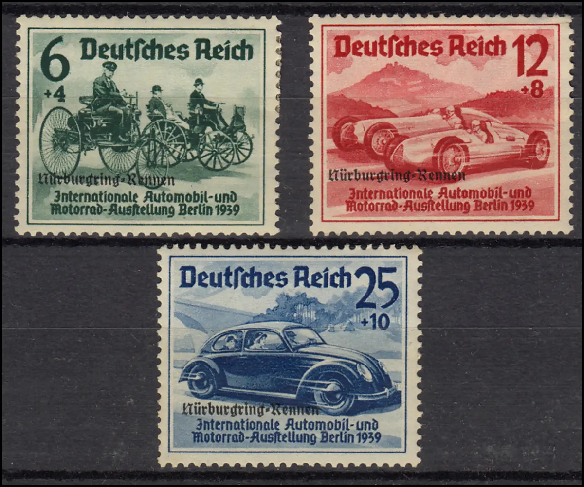 695-697 Nürburgring-Rennen mit Aufdruck, Satz mit Falzresten *
