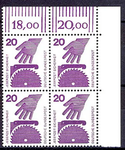 696 Prévention des accidents 20 Pf Eck-Vbl. or ** post-fraîchissement