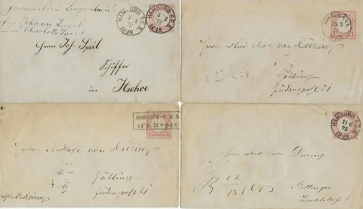 6x pièces justificatives Hambourg vers 1870, 5x dont boucliers mammaires