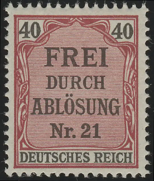 7 Remplacer par l'inscription n° 21, 40 Pf par la poste **