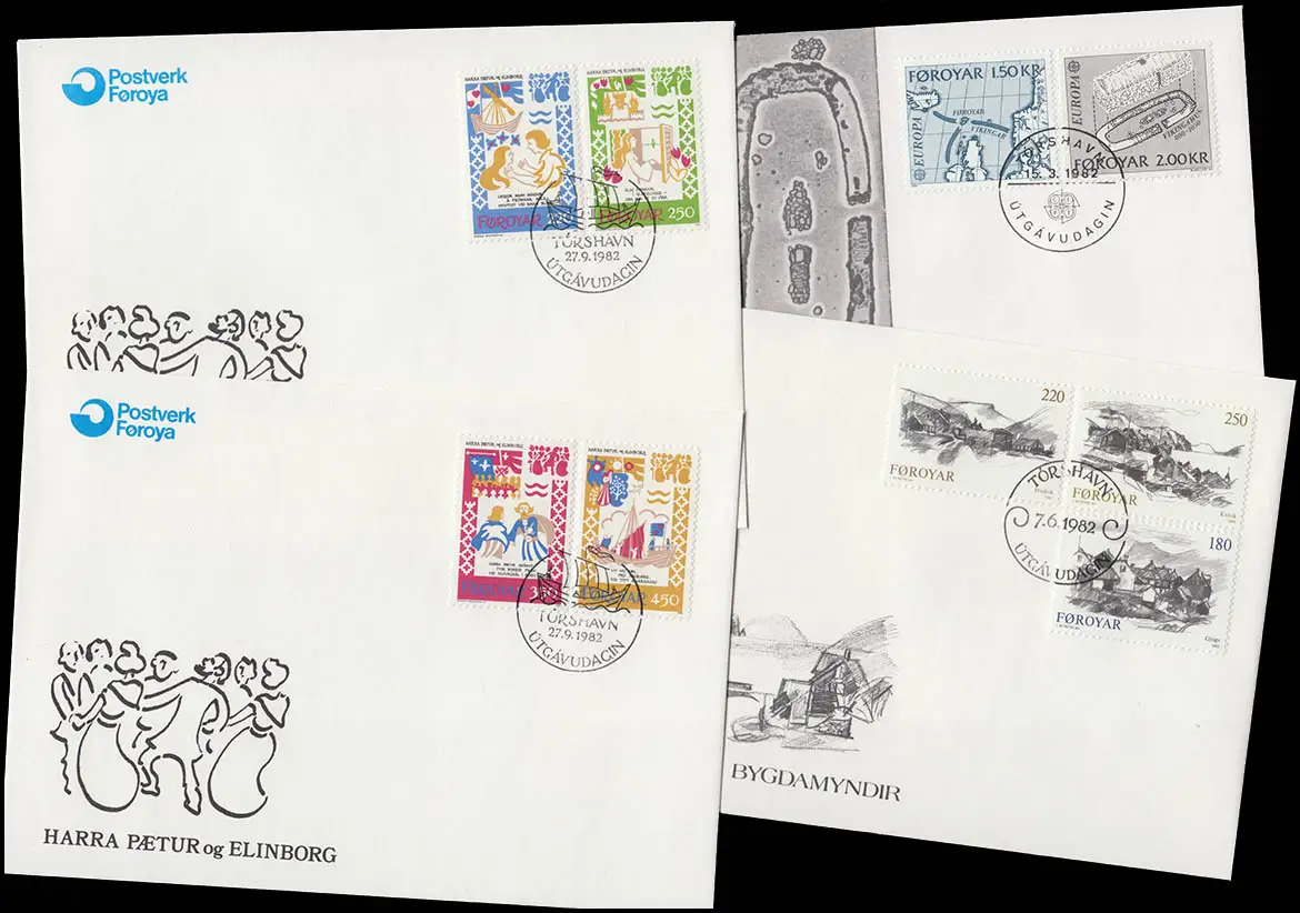 70-78 Danemark-Färöer 1982 complet, quatre FDC