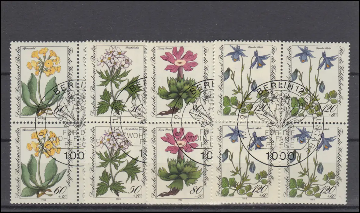 703-706 Fleurs alpines menacées 1983: ensemble quadribloc ESSt BERLIN