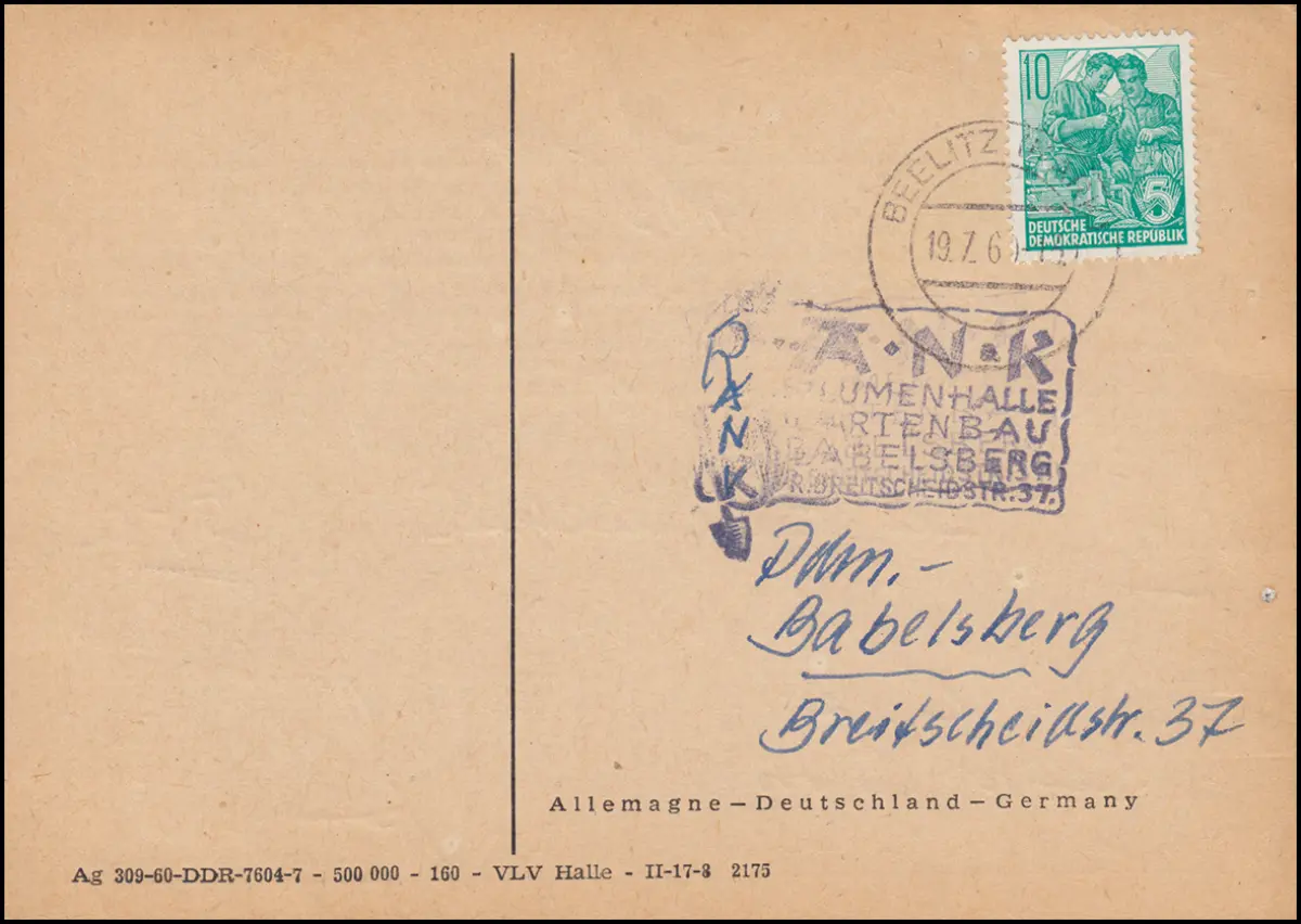 704B EF carte FLEUROP salutation fleuri, Maison de fleurs Rank à Potsdam-Babelsberg