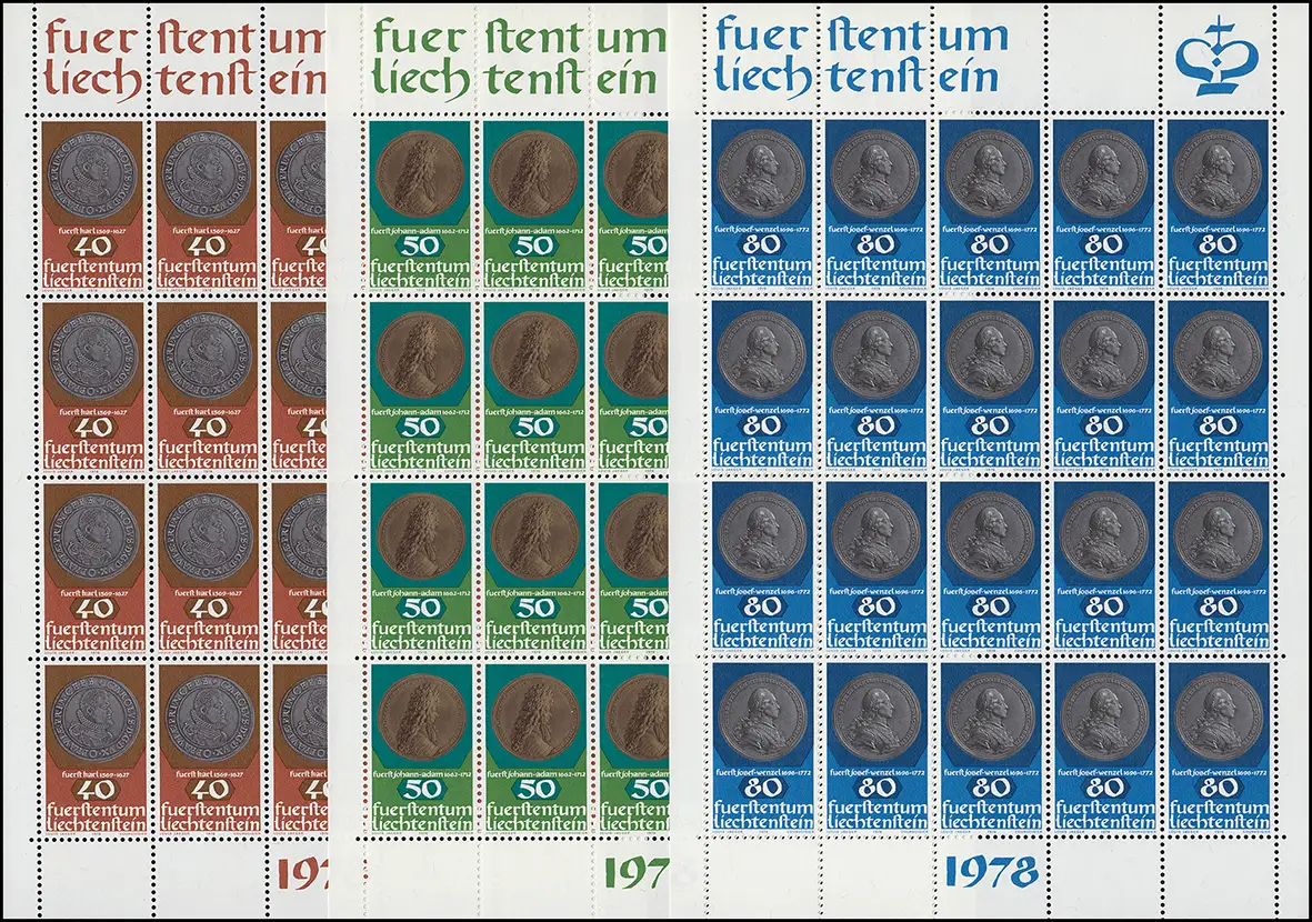 710-712 Pièces et médailles, 3 valeurs, jeu de petites feuilles ** post-fraîchissement / MNH