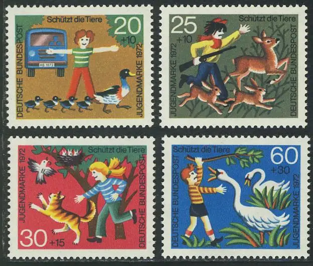711-714 Jeunesse Protection des animaux 1972, phrase ** post-fraîchissement