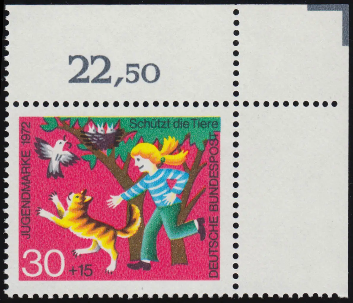 713 Jeunesse Bien-être des animaux 30+15 Pf Chat chasse les oiseaux ** coin o.r.
