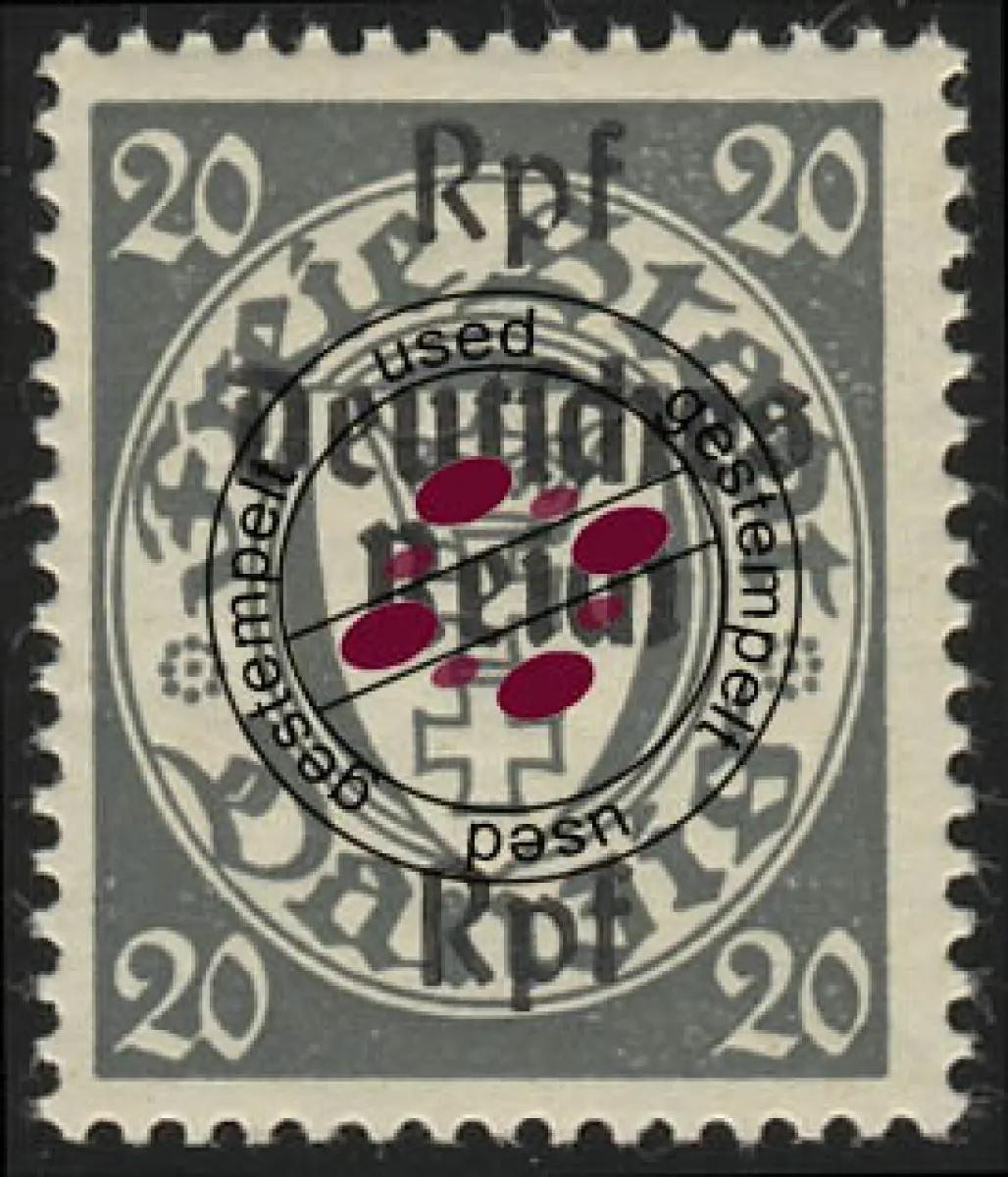 723 Danzig mit Aufdruck 20 Rpf auf 20 Pf, gestempelt O