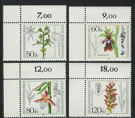 724-727 Wofa Orchidées 1984, coin o.l. phrase **