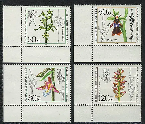 724-727 Wofa Orchidées 1984, coin et l. ensemble **