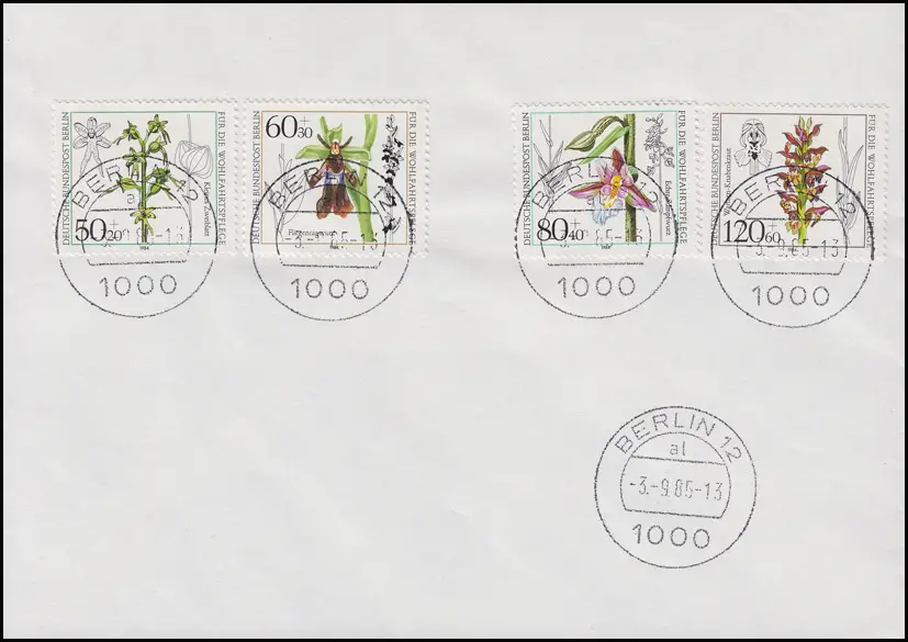 724-727 Wofa Orchidées 1984 - Set sur enveloppe en blanc BERLIN 3.9.85