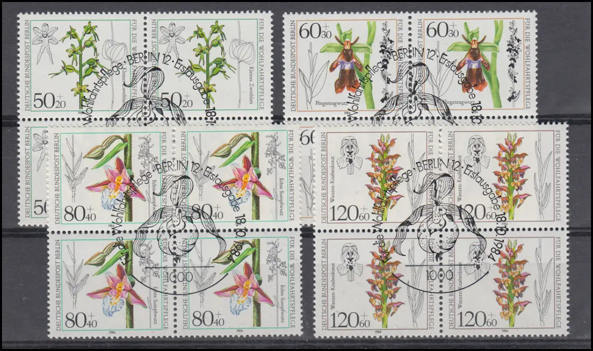 724-727 Wofa Orchidées 1984: jeu de quatre blocs ESSt BERLIN 18.10.84