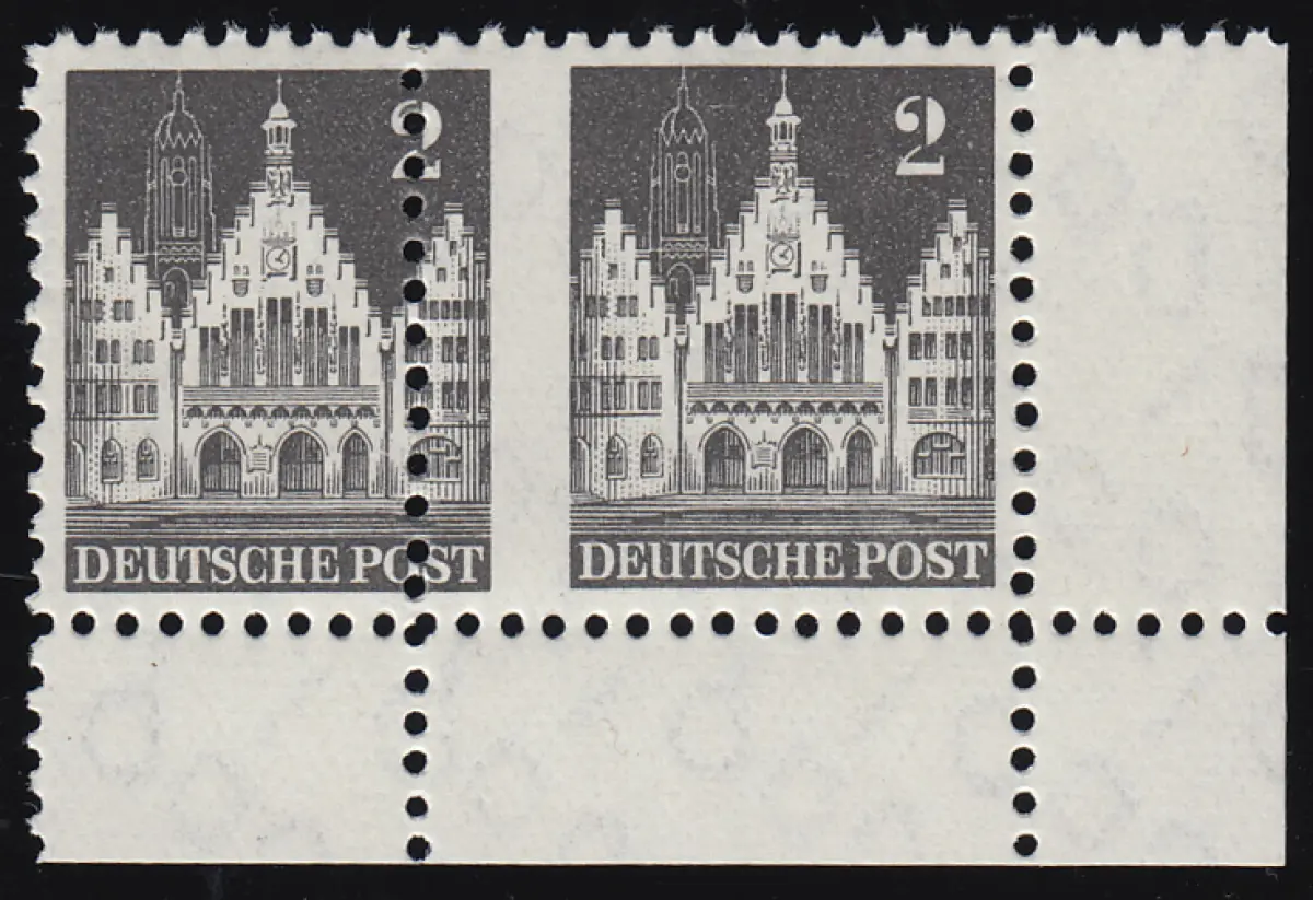 73 Bauten 2 Pf. Paar mit versetzter senkrechter Zähnungsreihe, postfrisch **