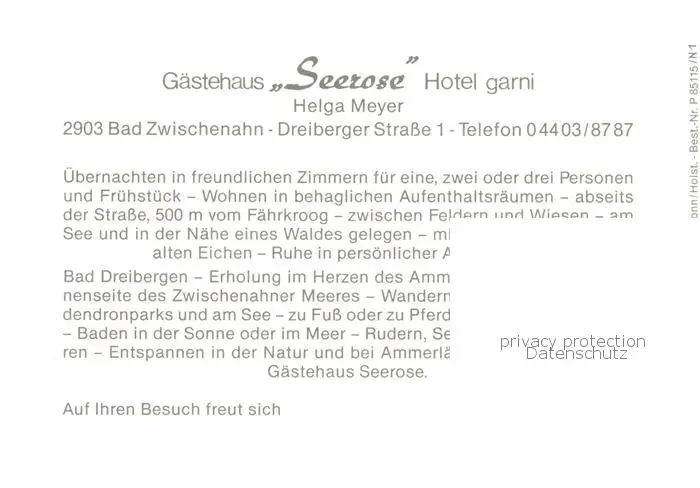73849404 Bad_Dreibergen Gaestehaus Seerose Hotel garni Garten Bad_Dreibergen postalisch nicht gelaufen nach 1965 Werbekarte (keine Postkarte) Erhaltung siehe scans [FriedD77] Werbekarte (keine Postkarte)[Frierer ]