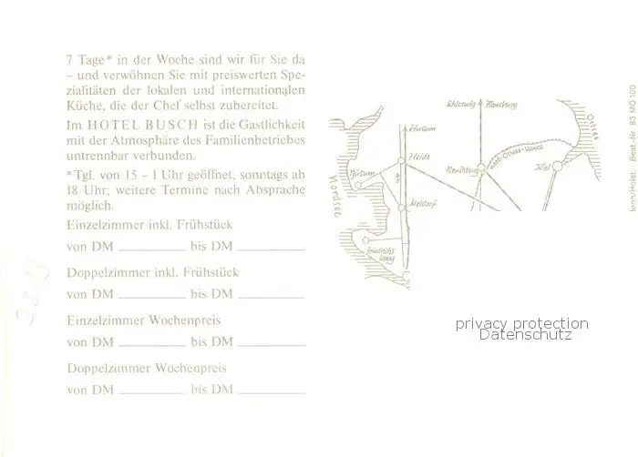 73849406 Wilster Hotel Busch Restaurant Kegelbahn Wilster postalisch nicht gelaufen nach 1965 Werbekarte (keine Postkarte) Erhaltung siehe scans [FriedD77] Werbekarte (keine Postkarte)[Frierer ]