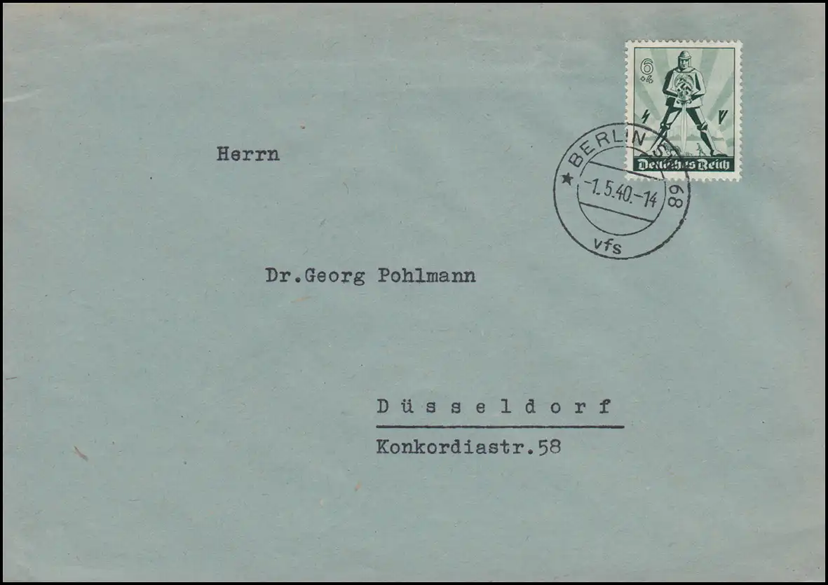 745 Journée du Travail 1er mai comme EF sur lettre BERLIN 1.5.40 - Rare datation!