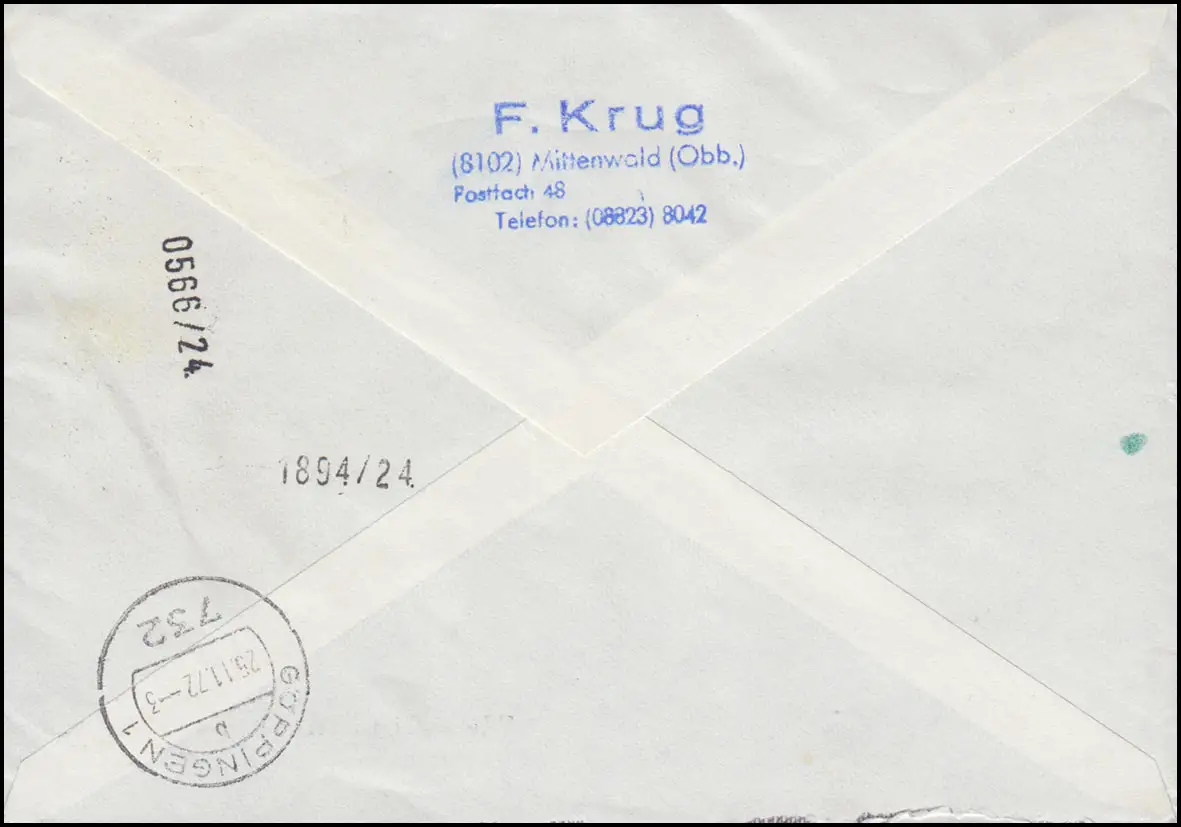 Tampon d'arrivée GÖPPINGEN 25.11.72 Numéro de catalogue: 747 Examen: original Référence produit: 00000000032064