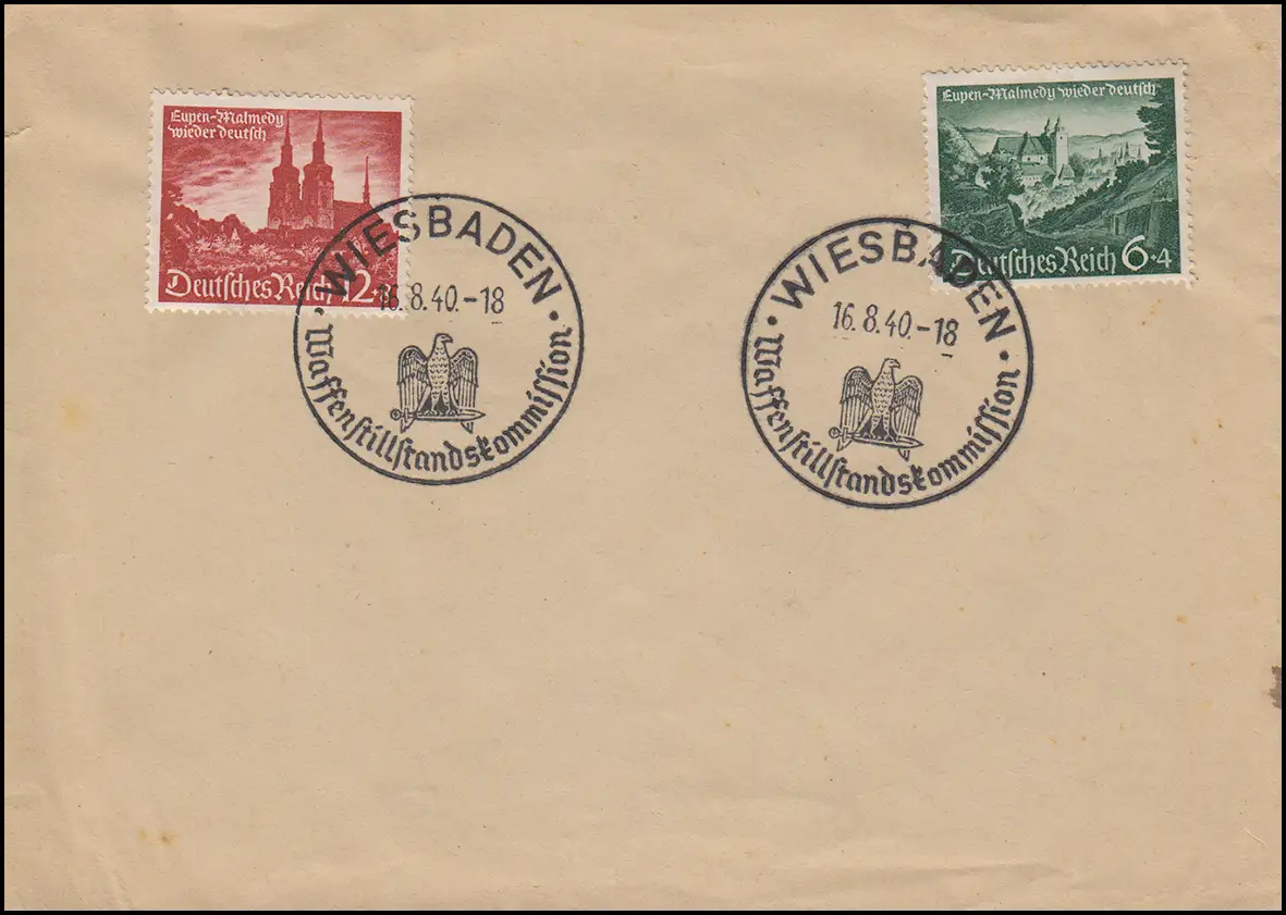 748-749 phrase sur l'enveloppe SSt WIESBADEN Commission de cessez-le-feu 16.8.40
