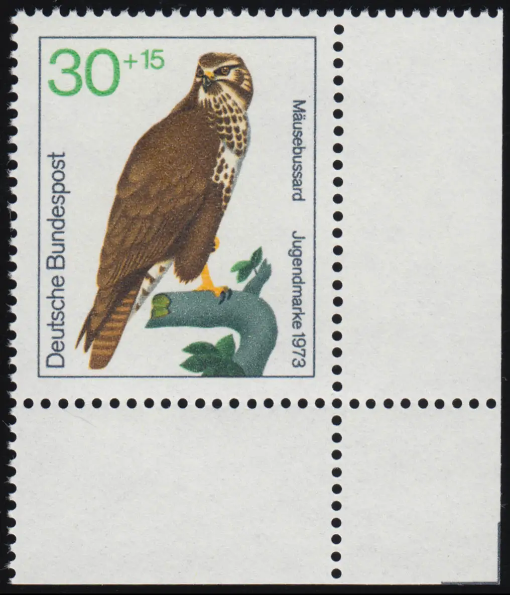 755 Jeunes oiseaux de proie 30+15 Pf Buse Bussard ** Coin et r.