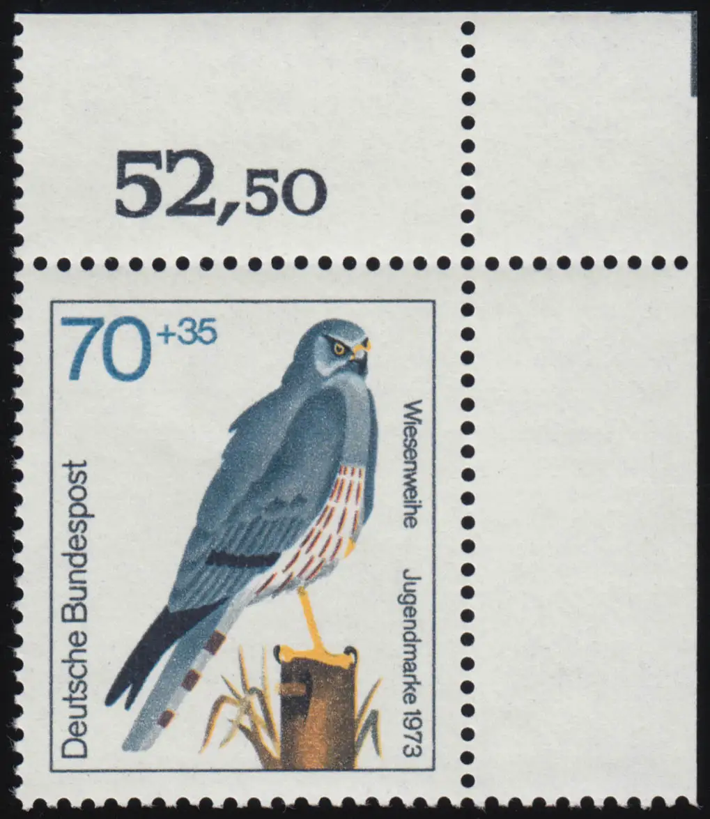 757 Jeunes oiseaux de proie 70+35 Pf Päsenweihe ** coin o.r.