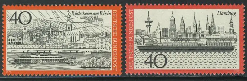 761-762 Tourisme Hambourg et Rüdesheim 1973, ensemble frais de port **