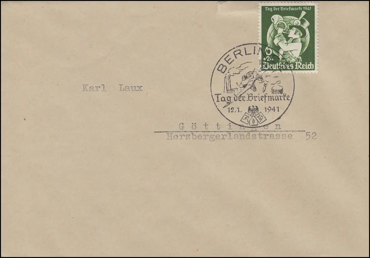 762 Jour du timbre Postillion EF FDC ESSST BERLIN T.d.B. Avion 12.1.1941