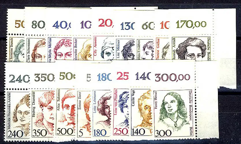 770ff Femmes 17 valeurs, coins en haut à droite, ensemble ** post-fraîchissement