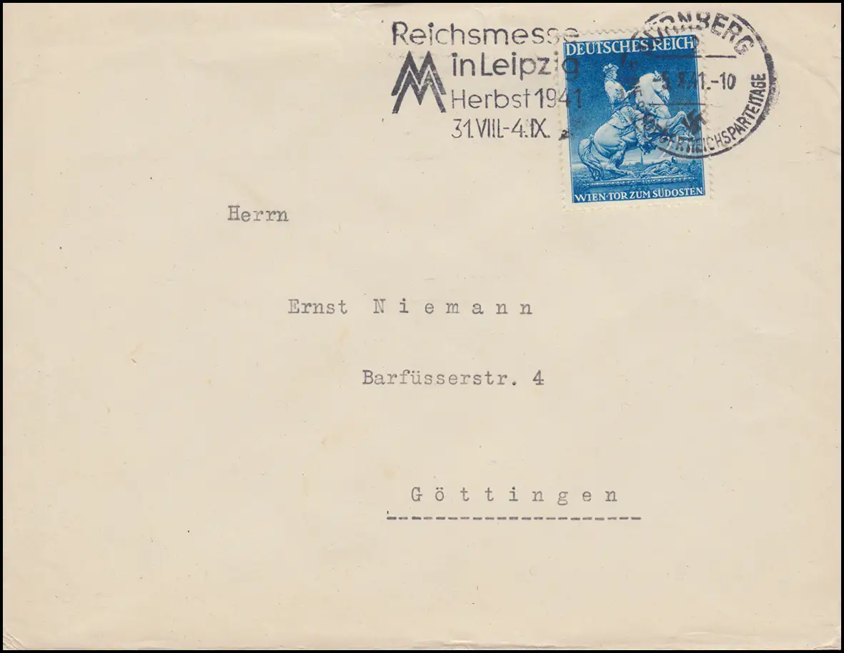 771 Salon de Vienne sur lettre avec publicité-O NÜRNBERG Reichsmesse Leipzig 5.8.1941