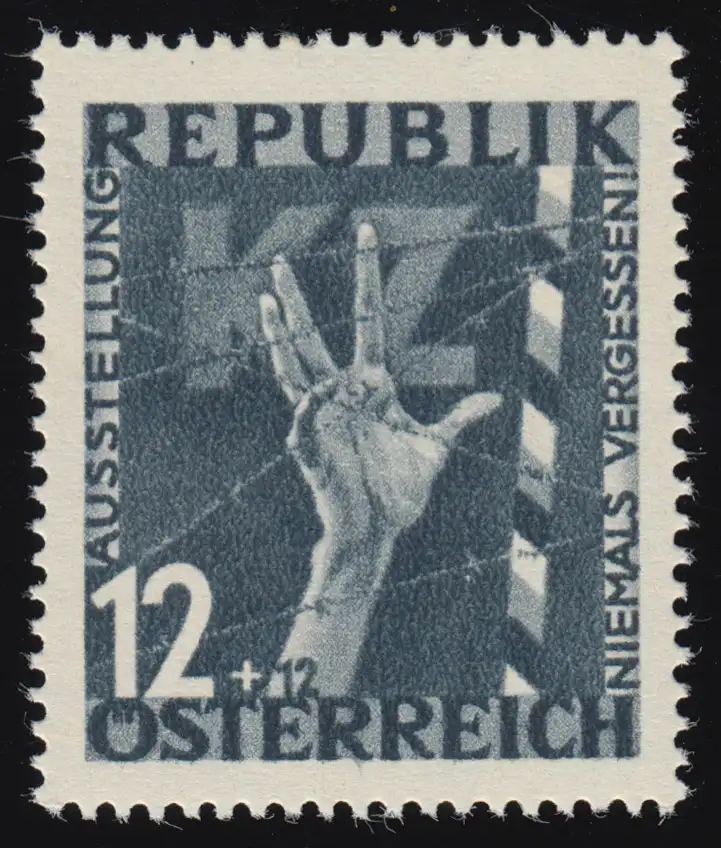 779 Exposition "Ne jamais oublier," main derrière fil barbelé, 12 g + 12g, **