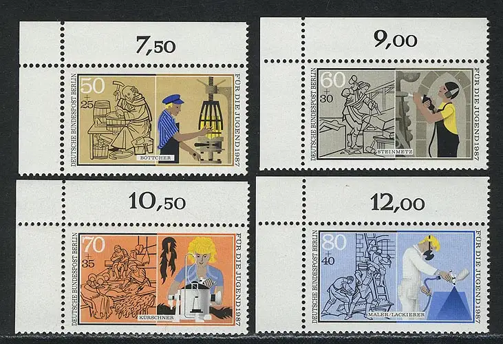 780-783 Jeunesse Professions artisanales 1987, coin o.l. phrase **