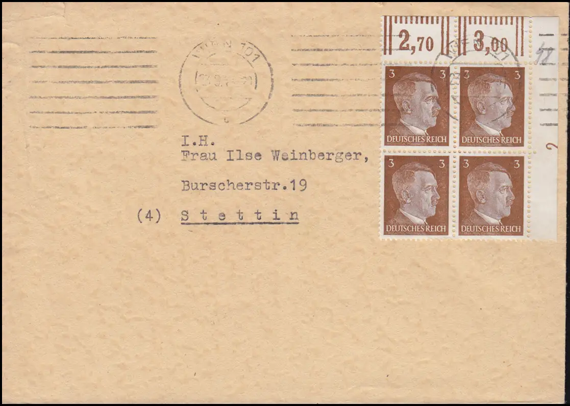 782 marque libre en tant que bloc quatre ER en haut à droite signe 2 sur lettre de Vienne