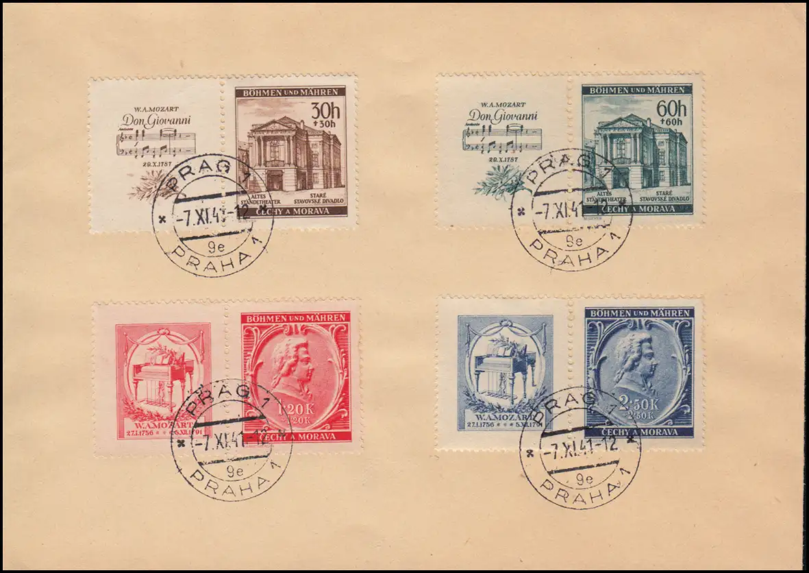 79Zf-82Zp Mozart: Ensemble avec champ d'ornement sur lettre en blanc PRAG / PRAHA 7.11.41