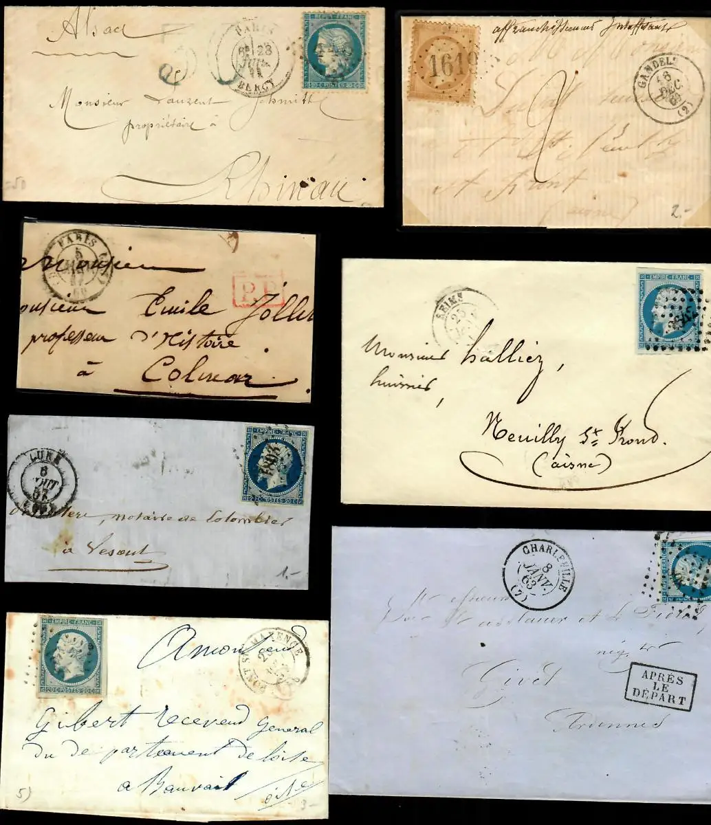 7x covers France, Charlesville, Reims, Paris, Lune, Pont St. Maxence around 1860