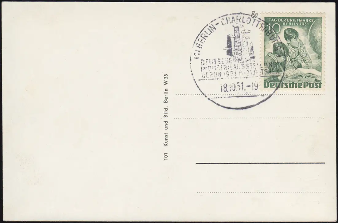 80 Journée du timbre à Blanko-AK, exposition industrielle SSt BERLIN 18.10.1951