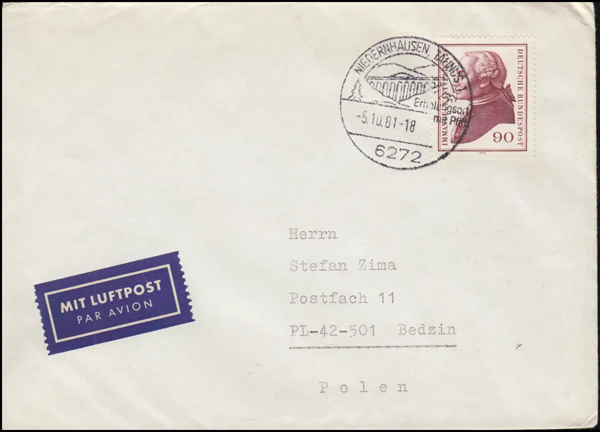 par lettre postale aérienne en Pologne avec cachet d'arrivée BEDZIN 13.10.81 Numéro de catalogue: 806 Examen: original Référence produit: 00000000017796