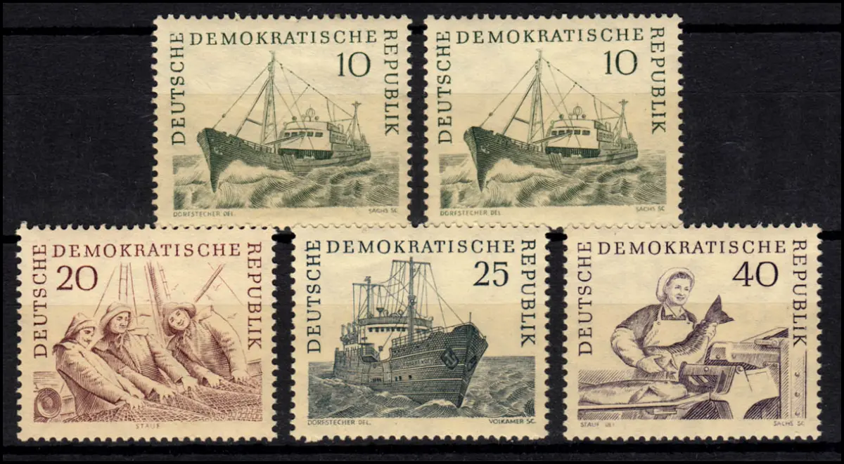 817-820 Pêche en haute mer 1961: 5 valeurs, avec 817X +Y +Pf. MAYER, phrase **