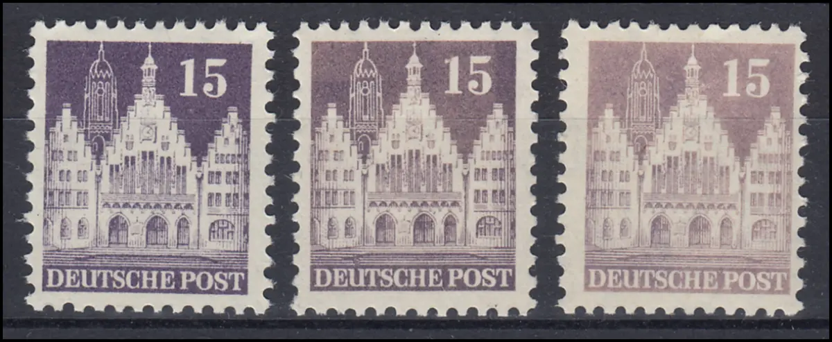 82 wg Bauten 15 Pf. Set mit drei unterschiedlichen Farbtönungen, postfrisch **