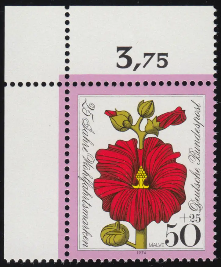 820 Wohnf Fleurs 50+25 Pf Malve ** coin o.l.