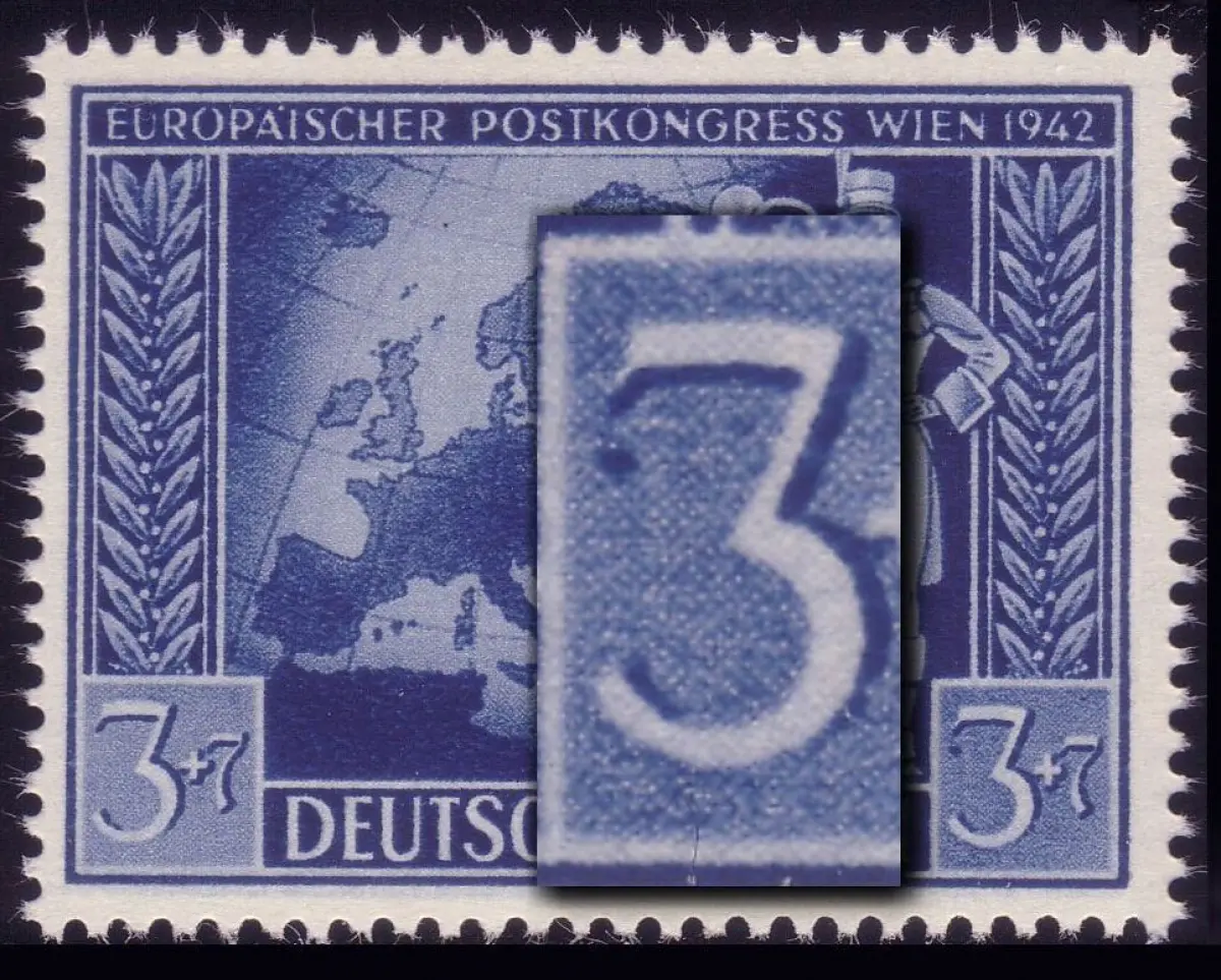 820III PostCongress 3 Pf - Erreur de plaque point bleu à gauche de la 3, F.29 **
