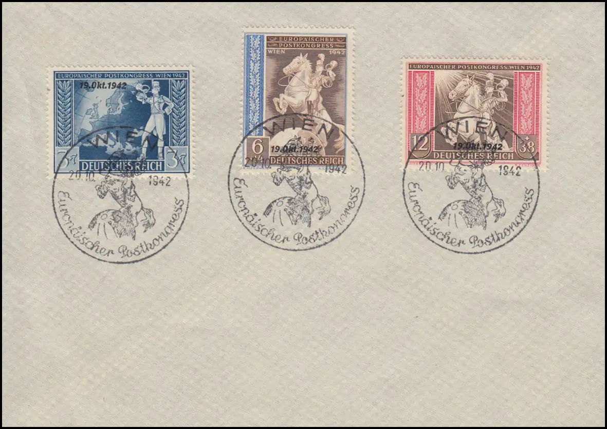823-825 Congrès post-posté avec impression, ensemble sur papier SSt WIENNE 20.10.1942