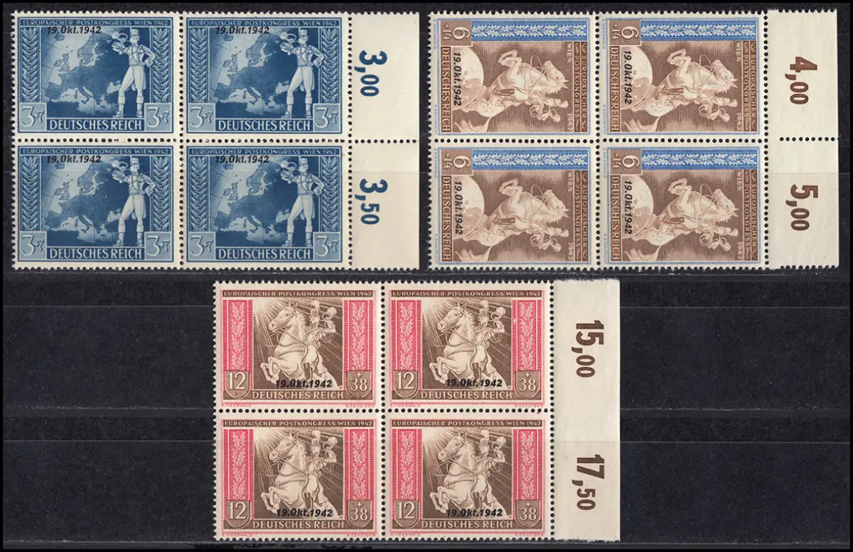 823-825 Congrès post-posté avec impression, jeu dans le quadruple avec compteurs de série, **